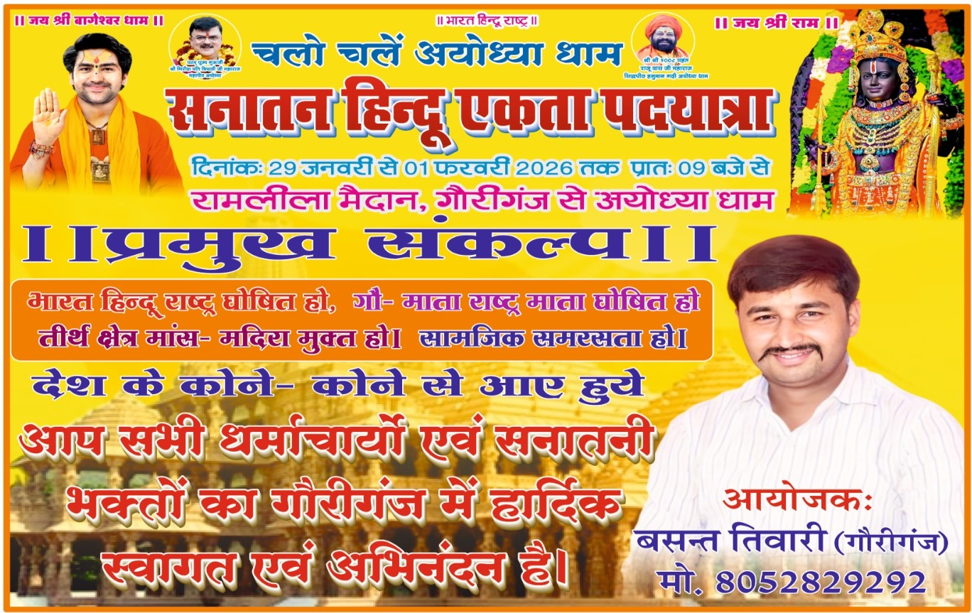 *सनातन हिंदू एकता यात्रा गौरीगंज से अयोध्या धाम तक बसंत तिवारी जी के नेतृत्व में*…