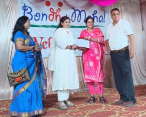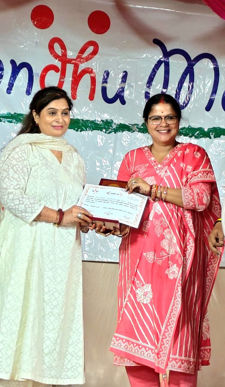 कार्यक्रम में विशिष्ट अतिथि के रूप में उपस्थित सामाजिक कार्यकर्ता प्रतिमा पाठक एवं बंधु महल के अध्यक्ष मनोज भद्रा, सचिव सुशांतो घोष एवं विशजीत बैनर्जी के करकमलों से शिक्षिका रीना त्रिपाठी को सम्मानित किया गया।
